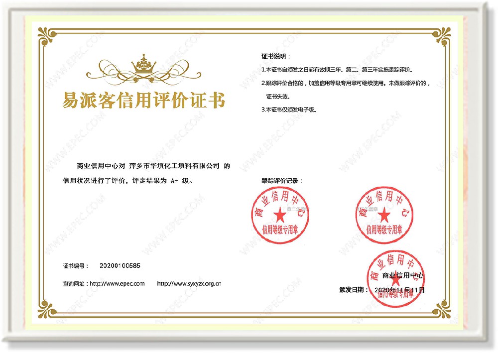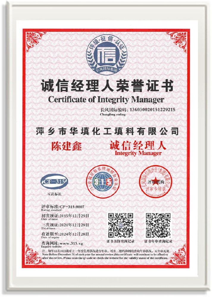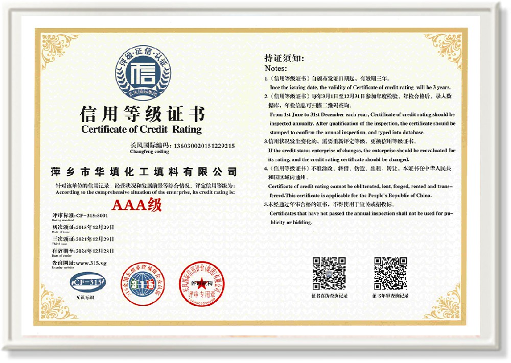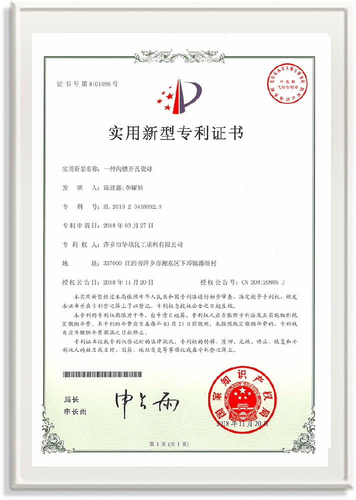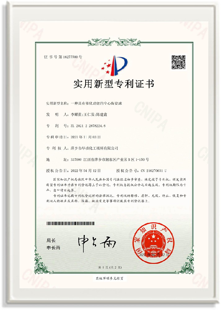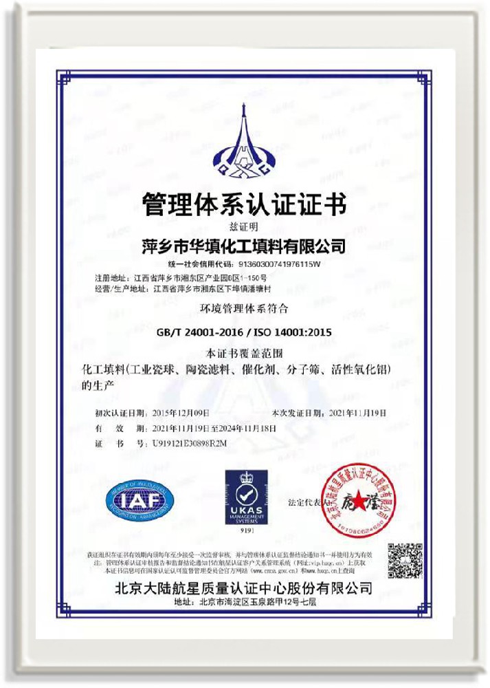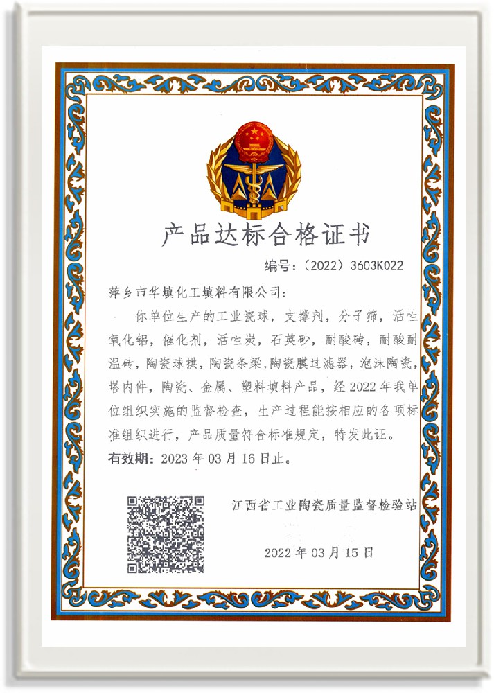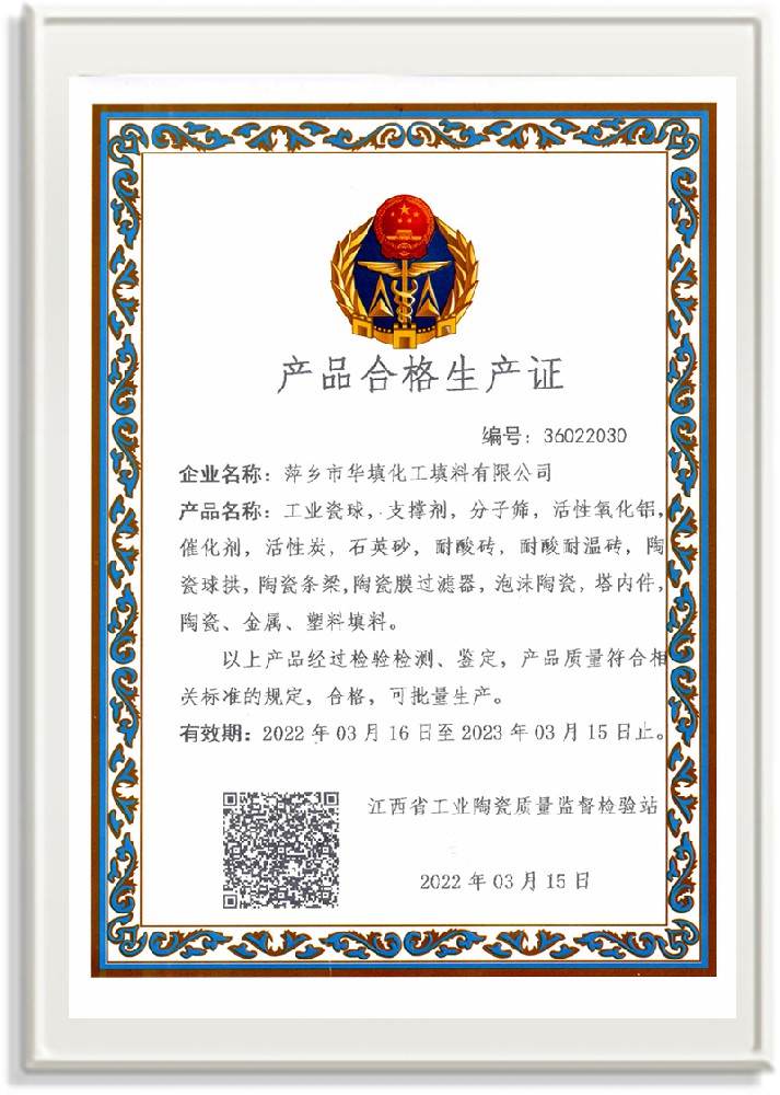 萍鄉市華填化工填料有限公司,位于320國道、109國道、浙贛鐵路、昌金高速公路貫穿其中,交通便利,是江西西部一顆燦爛明珠,創(chuàng)建于20世紀70年代初期,是中國石油天然氣股份有限公司“能源一號網”會員企業、中國石化物資采購電子商務網絡和中國海洋石油總公司采辦業務系統成員單位,是上海大學江西材料基因組工程產業研究院工業陶瓷產業創(chuàng)新聯盟基地,且通過ISO9001:2015質量管理體系、ISO14001:2015環(huán)境管理體系、ISO45001:2018職業健康安全管理體系認證的化工填料生產企業。公司擁有陶瓷、塑料、金屬填料、催化劑、活性氧化鋁、分子篩等產品生產線,現有固定資產3616萬元,占地面積3.8萬平方米。公司具有悠久的生產歷史、雄厚的技術力量和先進的生產工藝設備,可生產工業瓷球(支撐劑)、陶瓷、金屬、塑料質的規(guī)整、散堆化工填料及分子篩、催化劑、生化濾料、活性氧化鋁、石化助劑、活性炭、環(huán)保材料、耐火材料等系列的200多種規(guī)格型號產品。